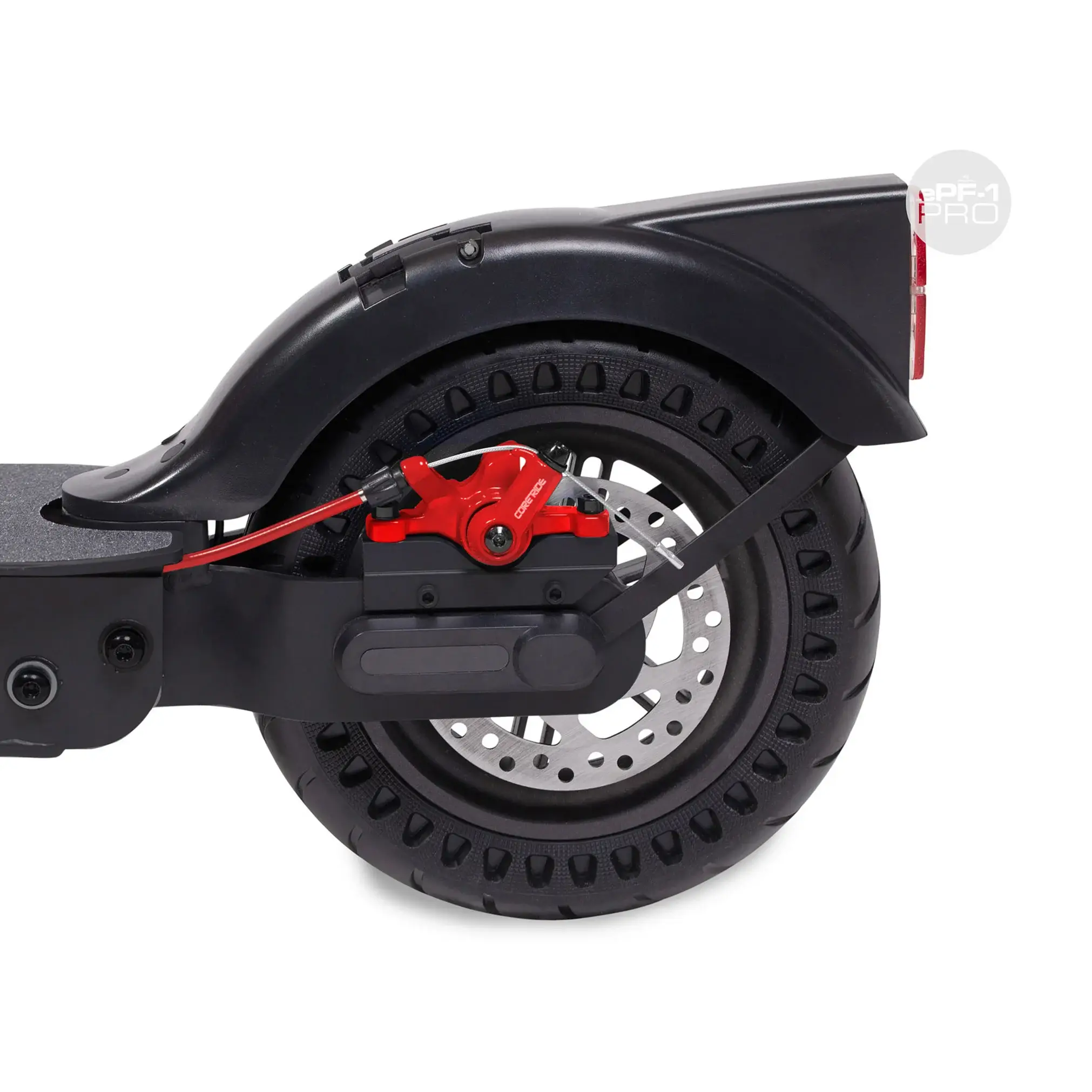- 2) Die 10“ Luftkammerreifen. Wir haben EXTREM viele Tests mit Luftkammerreifen der verschiedensten Herstellern gemacht. Wir erzielten Reichweitenunterschiede von bis zu 5KM, obwohl es sich immer um 10“ Luftkammerreifen handelte. Wir haben herausgefunden, daß nicht nur die Gummimischung sondern auch die Reifenform einen Einfluss hat. Daher sprechen wir beim ePF-1 PRO auch jetzt von Eco-Luftkammerreifen, einfach weil wir durch die Optimierung unserer Reifen soviel Reichweite gewonnen haben.